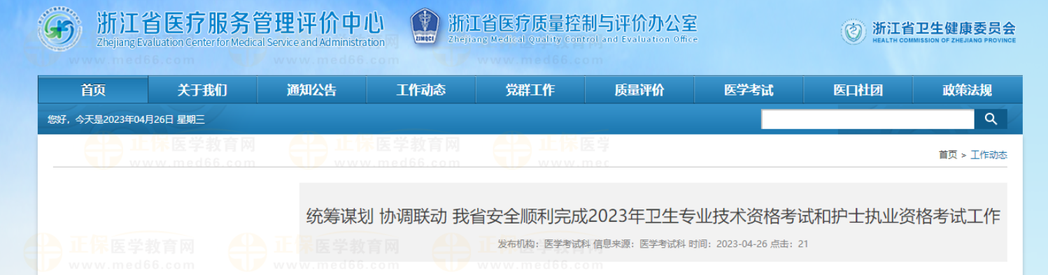 浙江省醫(yī)療服務(wù)管理評價中心發(fā)布:統(tǒng)籌謀劃 協(xié)調(diào)聯(lián)動 我省安全順利完成2023年衛(wèi)生專業(yè)技術(shù)資格考試和護(hù)士執(zhí)業(yè)資格考試工作,醫(yī)學(xué)教育網(wǎng)整理詳細(xì)內(nèi)容分享如下: