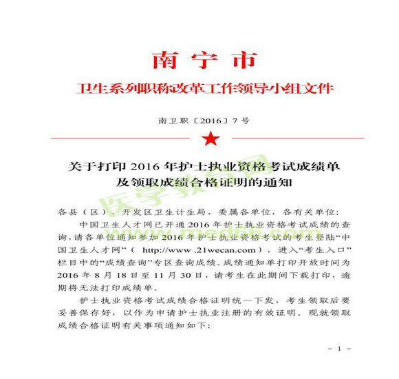 廣西南寧2016年護士考試成績單及合格證明現(xiàn)已開始領取,醫(yī)學|教育網(wǎng)搜集整理如下內容,望廣大考生周知: