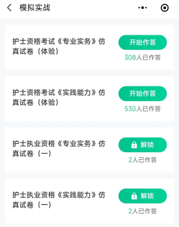 點(diǎn)擊“開始作答”可免費(fèi)獲取一套體驗(yàn)試卷,點(diǎn)擊“解鎖”或者“一鍵解鎖”,還可解鎖兩套實(shí)戰(zhàn)模擬卷!