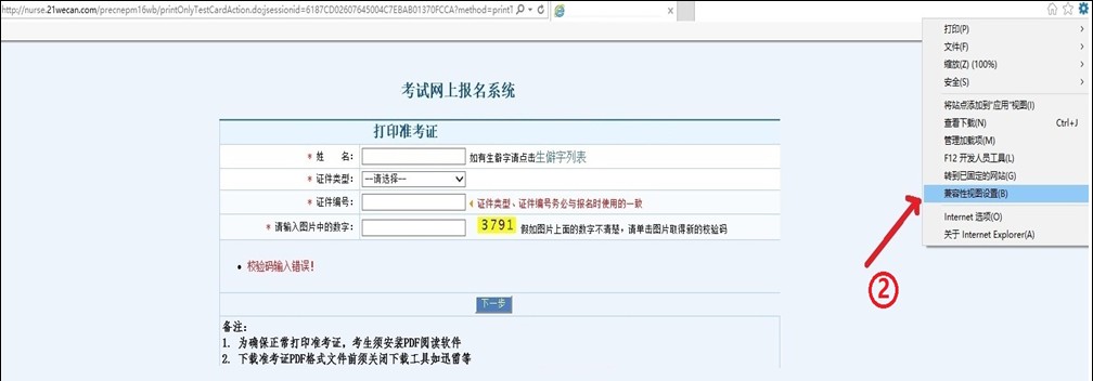 2017年護士資格考試準考證打印入口正式于4月12日開通,2017年護士資格考試準考證打印時間為2017年4月12日至5月6日,醫(yī)學教育網(wǎng)小編建議各位2017年護士資格考生避開高峰期進行準考證打印。那么如何進行準考證打印呢?在打印準考證過程中無法點擊“確定”如何解決?2017年護士考試準考證打印瀏覽器兼容性設置,如下: