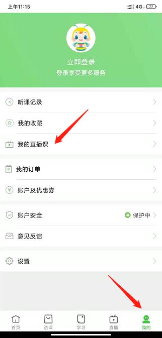 3、點(diǎn)擊“我的”,進(jìn)入直播課頁面。