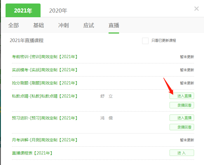 本次直播課只針對(duì)購(gòu)買網(wǎng)校高效定制班、面授旗艦班、高效取證班班(續(xù)學(xué))的學(xué)員觀看!“2021口腔執(zhí)業(yè)/助理醫(yī)師-牙周病學(xué)私教點(diǎn)睛直播3月17日開講!”具體內(nèi)容如下: