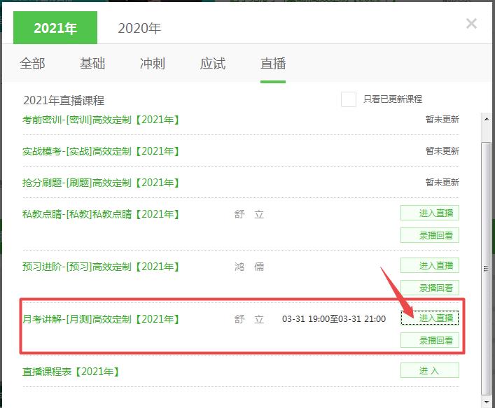 詳情關(guān)于“【月測試】5月19日2021年口腔醫(yī)師私教點睛直播課”,醫(yī)學教育網(wǎng)編輯整理相關(guān)內(nèi)容如下,本次直播課只針對購買網(wǎng)校高效定制班、面授旗艦班、高效取證班班(續(xù)學)的學員觀看!