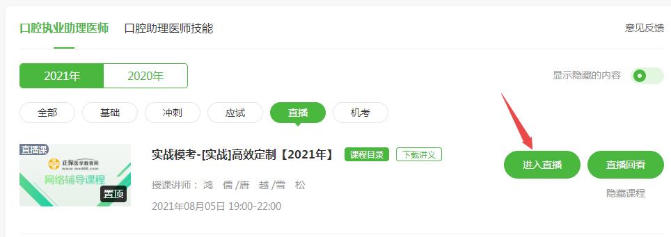 【課程表】2021年口腔執(zhí)業(yè)/助理醫(yī)師高效定制班直播課安排
