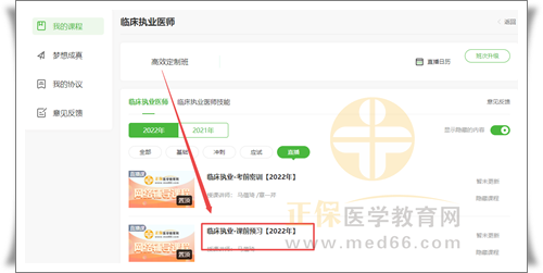 從醫(yī)學(xué)教育網(wǎng)首頁進(jìn)入“我的網(wǎng)校我的家”-“我的課程”-“進(jìn)入學(xué)習(xí)”-“直播”-課前預(yù)習(xí),直播前開放直播入口;