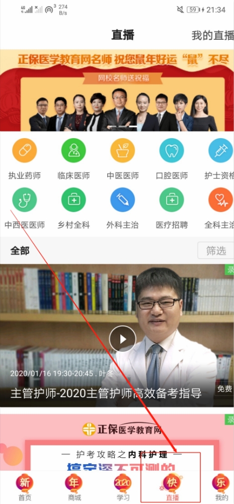 3、點(diǎn)擊“直播”,選擇本次直播,即可進(jìn)入直播課頁面。