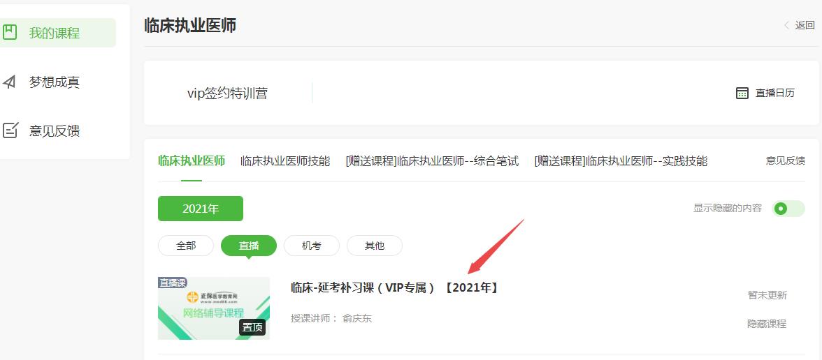 2021年臨床執(zhí)業(yè)/助理醫(yī)師VIP簽約特訓(xùn)營直播課表安排詳情
