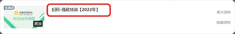 點擊“婦科-強化特訓”,進入直播入口,直播開始前,截圖所示位置會更新直播入口: