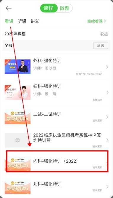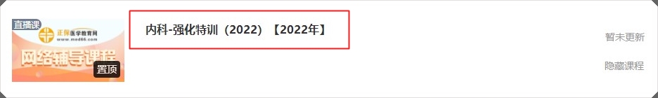 點(diǎn)擊“內(nèi)科-強(qiáng)化特訓(xùn)”,進(jìn)入直播入口,直播開始前,截圖所示位置會(huì)更新直播入口: