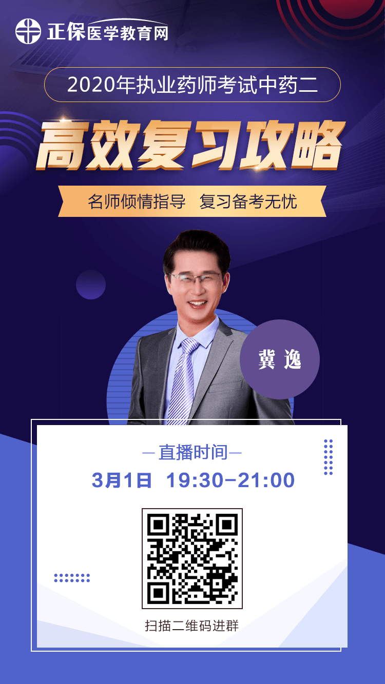 預(yù)告路漫漫其修遠(yuǎn)兮,吾將上下而求索!2020年執(zhí)業(yè)藥師備考路途漫漫,醫(yī)學(xué)教育網(wǎng)陪大家一步一步走,3月1日 19:30-21:00冀逸老師有2020年執(zhí)業(yè)藥師考試中藥二高效復(fù)習(xí)攻略 免費(fèi)直播!備考必看!約起來!