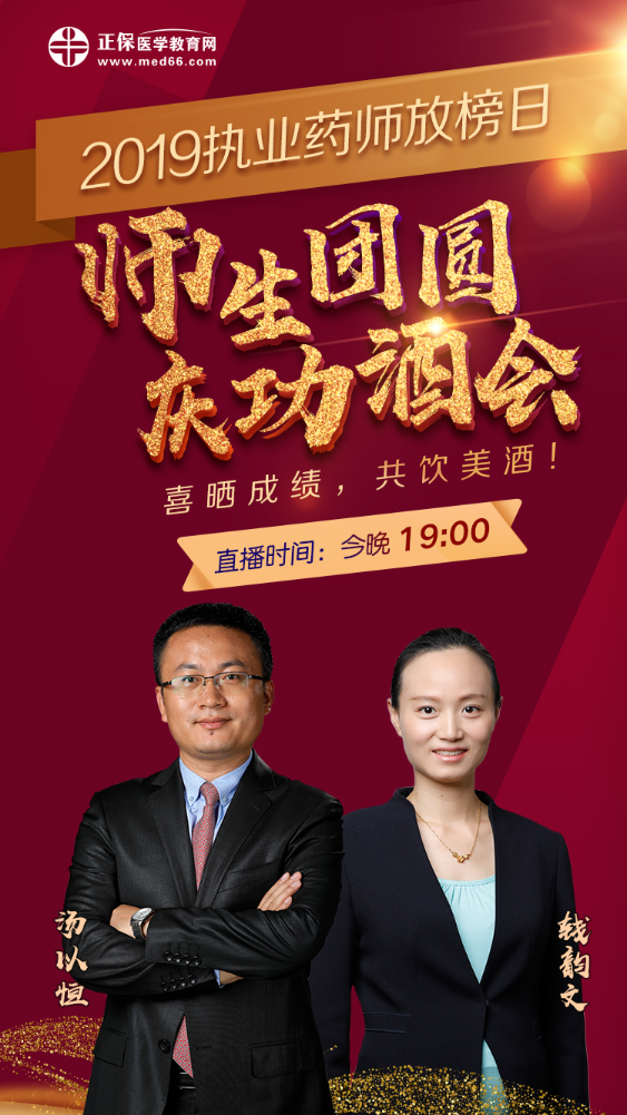 直播主題:2019執(zhí)業(yè)藥師放榜日,師生團(tuán)圓慶功酒會(huì)