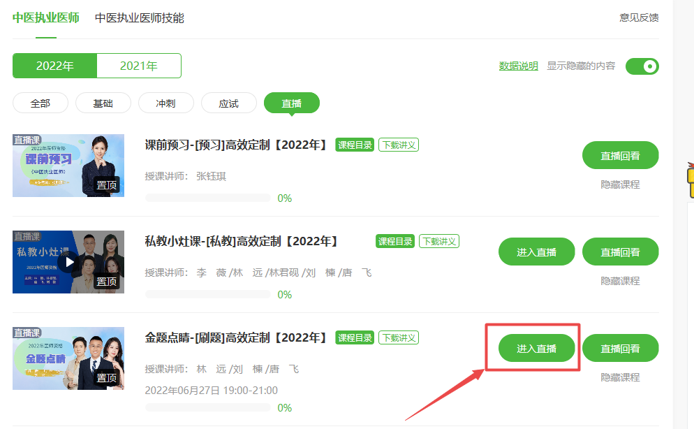 【直播課表】2022年中西醫(yī)執(zhí)業(yè)/助理醫(yī)師考試高效定制班直播課表