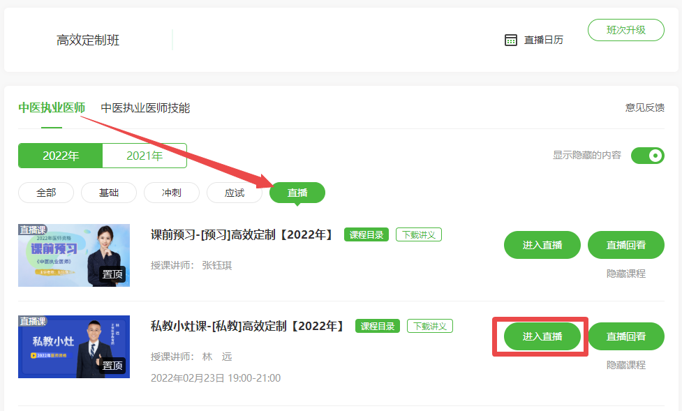 【直播課表】2022年中醫(yī)執(zhí)業(yè)/助理醫(yī)師高效定制班直播課表