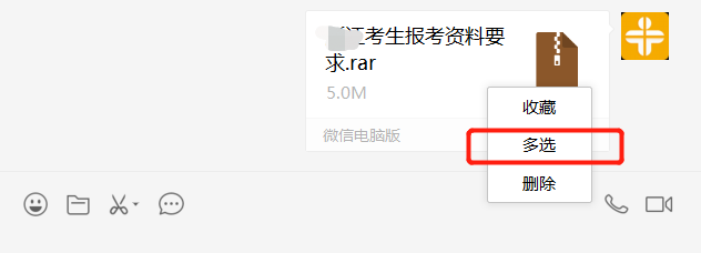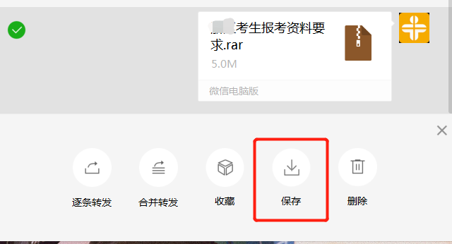 當(dāng)考區(qū)開始接收報(bào)名資料后,老師會(huì)通過微信發(fā)送給您“報(bào)考資料要求文件夾壓縮包”(rar格式)那么考生如何接收文件呢?注意:以下操作均需在電腦操作!