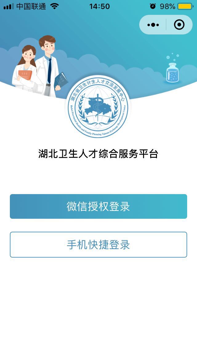 第一步:在手機(jī)微信上搜索“湖北衛(wèi)生人才”小程序,用您的手機(jī)號或微信號進(jìn)行授權(quán)登錄;