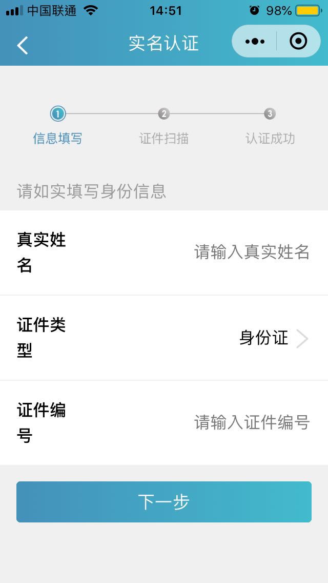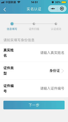 第二步:在認(rèn)證界面輸入您的真實姓名及身份證號;