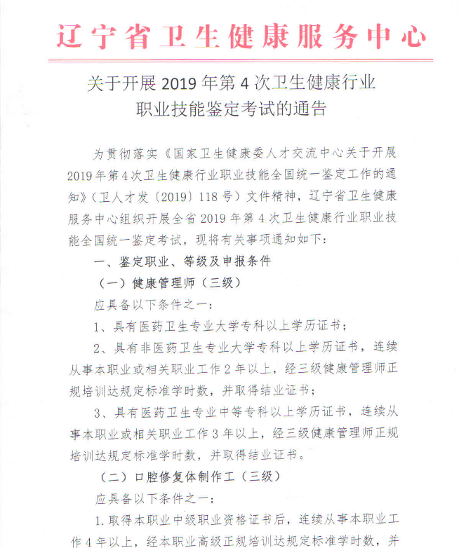 衛(wèi)健委關(guān)于開展2019年第4次衛(wèi)生健康行業(yè)職業(yè)技能全國(guó)統(tǒng)一鑒定工作的通知