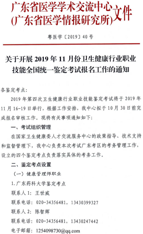 衛(wèi)健委關(guān)于開展2019年第4次衛(wèi)生健康行業(yè)職業(yè)技能全國(guó)統(tǒng)一鑒定工作的通知