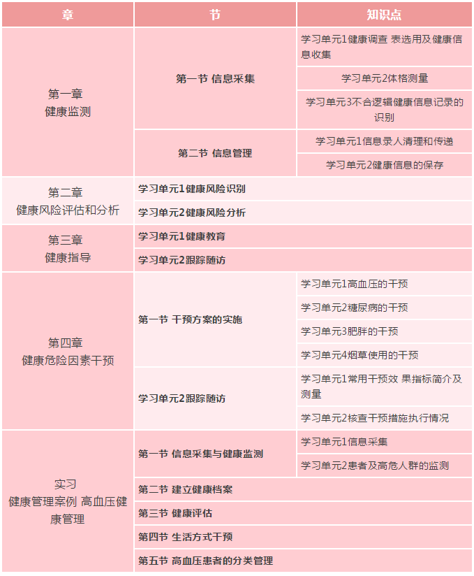 以上就是我為大家整理的2019年健康管理師三級(jí)專業(yè)技能考試大綱,還請(qǐng)大家多多關(guān)注醫(yī)學(xué)教育網(wǎng),我們會(huì)隨時(shí)更新更多更好的有關(guān)醫(yī)學(xué)知識(shí)、醫(yī)療招聘及考試輔導(dǎo)等相關(guān)信息。敬請(qǐng)期待!