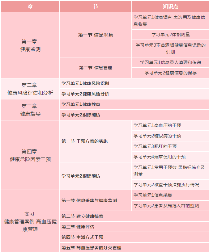 以上就是小編為大家整理的2019年三級健康管理師考試大綱,還請大家多多關(guān)注醫(yī)學(xué)教育網(wǎng),我們會隨時更新更多更好的有關(guān)醫(yī)學(xué)知識、醫(yī)療招聘及考試輔導(dǎo)等相關(guān)信息。敬請期待!