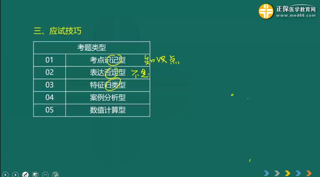 首先,小編根據(jù)健康管理師歷年考試的形式、題目編排的比重等將健康管理師《基礎(chǔ)知識》和《專業(yè)技能》考試分為五種試題類型,分別是考點識記型、表達(dá)否定型、特征歸類型、案例分析型、數(shù)值計算型。