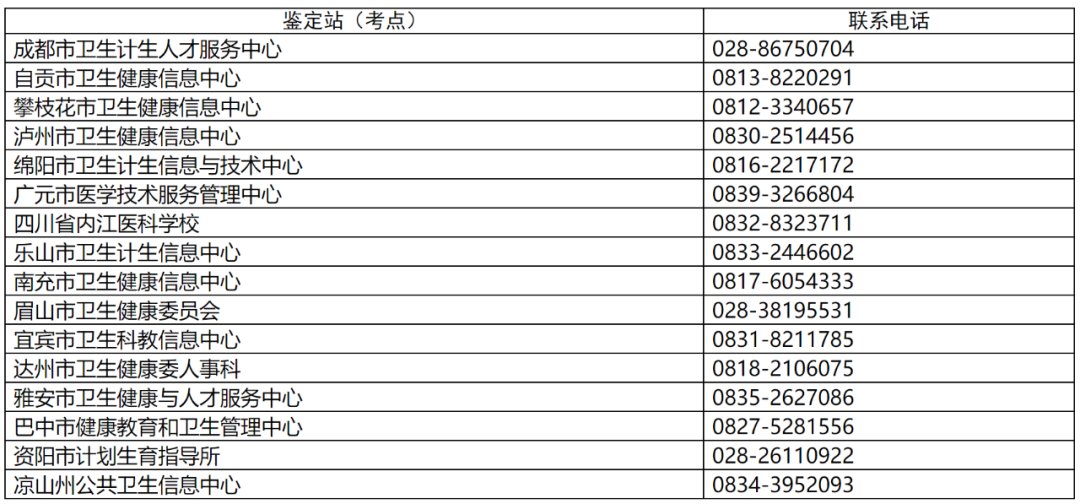 鑒定站(考點(diǎn))及聯(lián)系電話