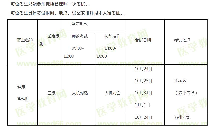 2020年健康管理師的熱度有增無減,大家對于考試相關(guān)的信息也都十分關(guān)心!不少學(xué)員都向小編咨詢了“官方通知:重慶健康管理師考試時間及批次”問題,今天醫(yī)學(xué)教育網(wǎng)小編就帶大家一起來看看吧。了解更多更全健康管理師信息,請點擊醫(yī)學(xué)教育網(wǎng)!報名、咨詢詳情請撥打客服熱線010 82311666、400 650 1888進行了解!