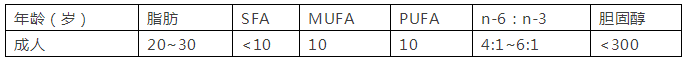 4、成人膳食脂肪參考攝入量: