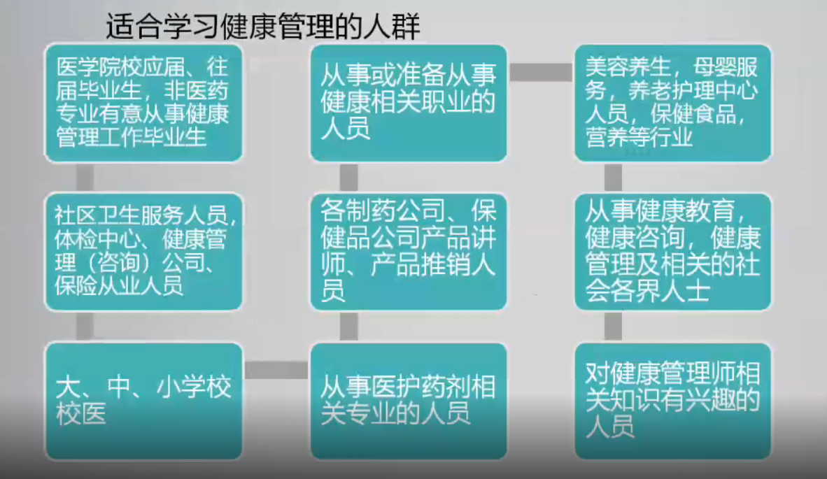 很多健康教育、健康咨詢的從業(yè)人員雖然具有一定的醫(yī)療背景但缺乏對于健康管理知識系統(tǒng)的學習,學習健康管理師可以提供一個更加全面的健康管理知識的培訓。