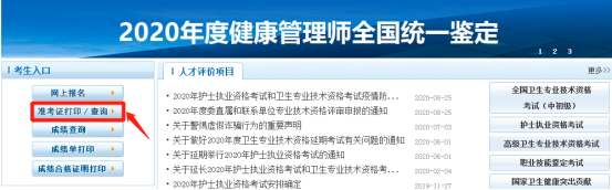 考生可于10月16-24日登陸中國衛(wèi)生人才網(wǎng)(www.21wecan.com)在“考生入口”欄,點擊“準考證打印”。