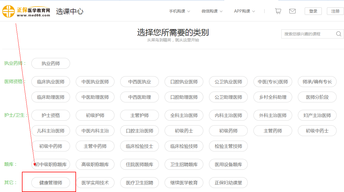 方式二:從醫(yī)學(xué)教育網(wǎng)首頁(yè)“選課中心”下單,具體步驟如下: