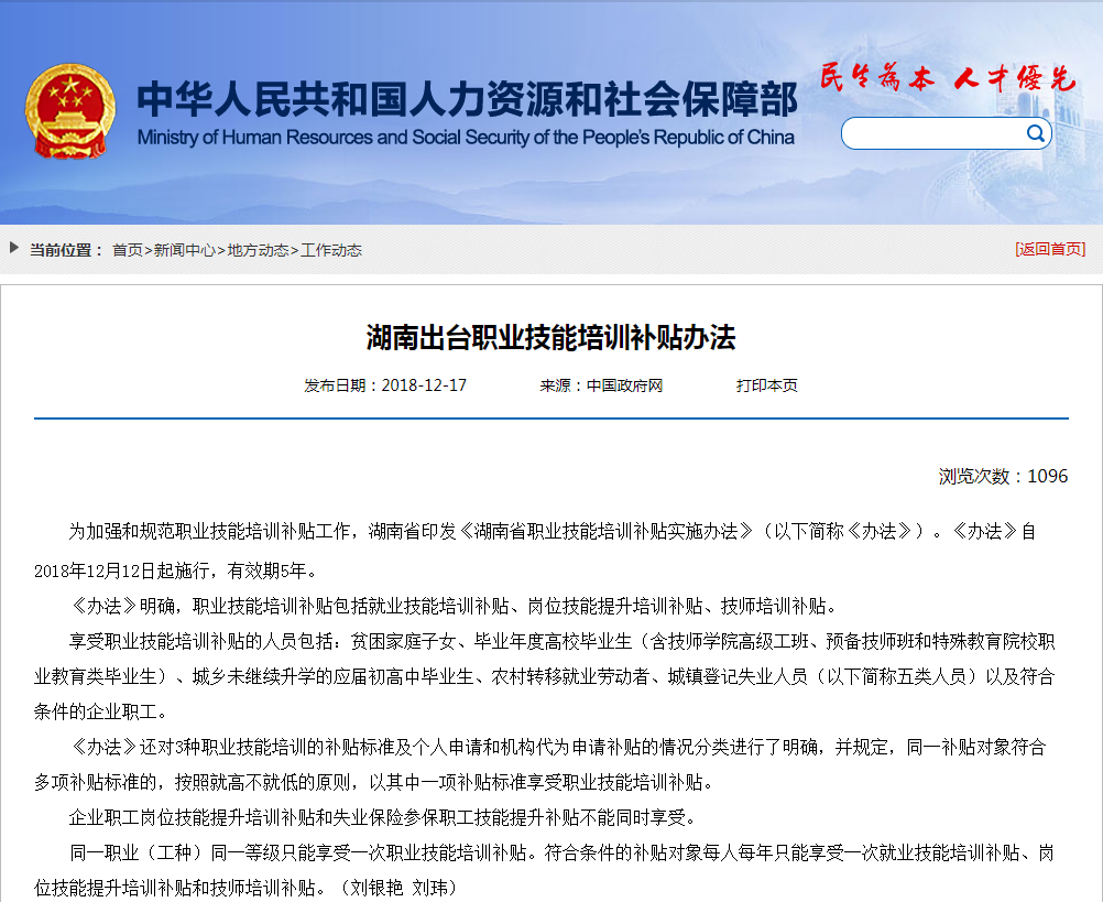 為加強和規(guī)范職業(yè)技能培訓(xùn)補貼工作,湖南省印發(fā)《湖南省職業(yè)技能培訓(xùn)補貼實施辦法》(以下簡稱《辦法》)。《辦法》自2018年12月12日起施行,有效期5年。