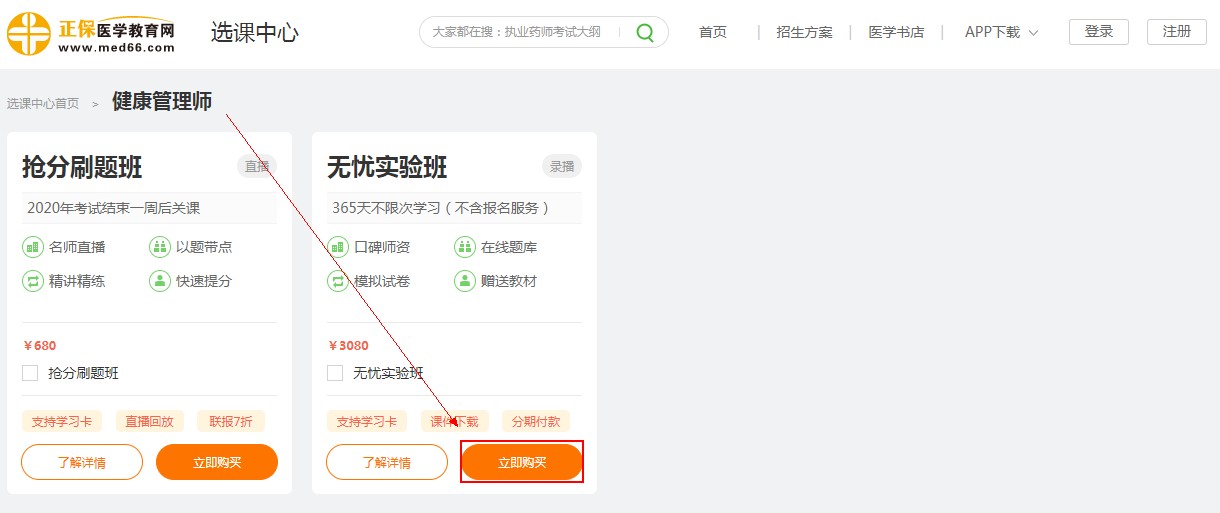 第一步:在選課中心選擇你想要的課程,點(diǎn)擊“立即購買”;選課中心>>>