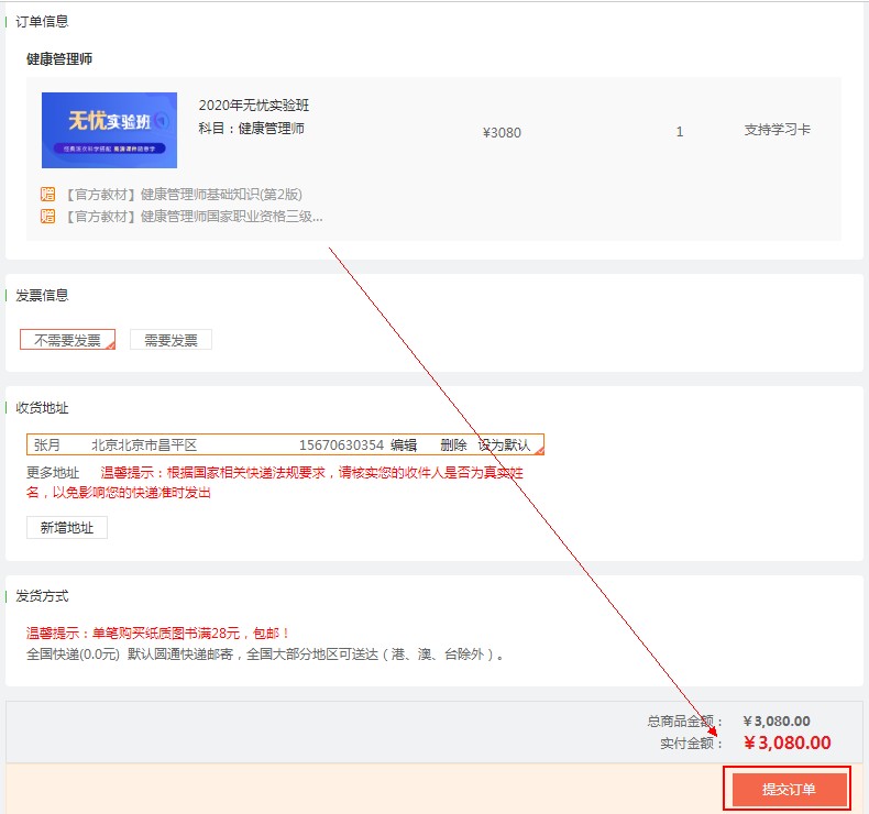 第二步:在訂單頁確認(rèn)無誤后,點(diǎn)擊“提交訂單”;