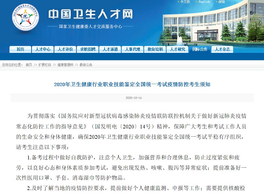 2020年衛(wèi)生健康行業(yè)職業(yè)技能鑒定全國統(tǒng)考試疫情防控考生須知