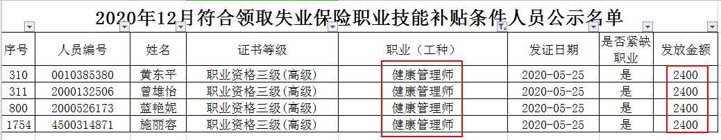 日前,廣西人社廳官網(wǎng)發(fā)布了《關(guān)于2020年12月符合領(lǐng)取失業(yè)保險(xiǎn)職業(yè)技能補(bǔ)貼條件人員名單的公示》,其中健康管理師獲得補(bǔ)貼2400元!為方便大家了解,醫(yī)學(xué)教育網(wǎng)小編特意收集整理了如下內(nèi)容,歡迎查看~~