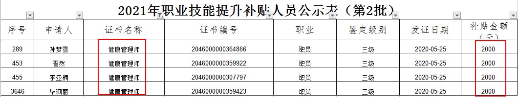 2021年度職業(yè)技能提升補(bǔ)貼公示名單(技能類第2批)