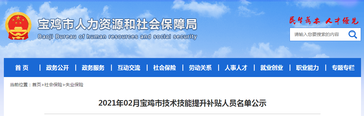 2021年02月寶雞市技術(shù)技能提升補(bǔ)貼人員名單公示