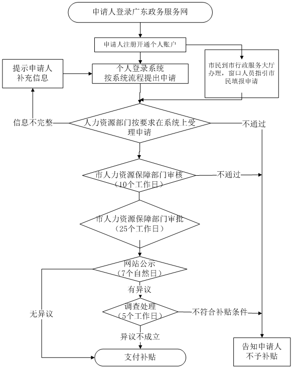 4、辦結(jié):公示通過后,市人力資源局做出是否發(fā)放補貼的決定,進入補貼支付環(huán)節(jié)。