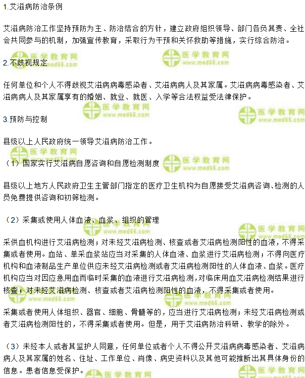 1)醫(yī)療機(jī)構(gòu)應(yīng)為艾滋病病人及感染者提供艾滋病防治咨詢、診斷、治療服務(wù),不得推諉、拒絕對其他疾病進(jìn)行治療。