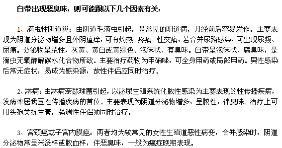 白帶異常是很多女性都會碰到的問題,白帶是女性身體健康的晴雨表,白帶的不同狀態(tài)會反映出身體的不同疾病,如果白帶出現(xiàn)惡臭是可能患上了哪些疾病呢?