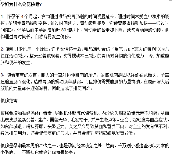 便秘是孕期最常見的煩惱,也是孕期經(jīng)常疏忽之處。千萬別小看這些習以為常的小毛病,一不留神它就會讓你悔恨終身。