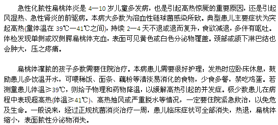 上面是對小孩得了化膿性扁桃體炎進行的講解,希望家長在日常日子中對孩子多加留意,急性化膿性扁桃體炎雖然看上去是個小病,可是很有可能會更嚴峻,引起其它疾病,一旦確診要及早進行醫(yī)治。