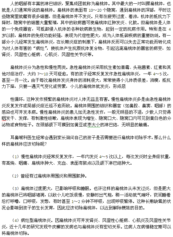 扁桃體手術(shù)雖是一個(gè)小手術(shù),由于它的特殊位置和功能,所以小編認(rèn)為決定是否手術(shù)切除時(shí)應(yīng)聽取??漆t(yī)生的建議,持慎重的態(tài)度。