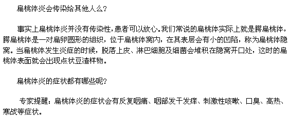 有時(shí)候很多疾病的發(fā)生就是因?yàn)樾〉募?xì)節(jié)注意不夠才導(dǎo)致的。扁桃體炎就是在這種情況下出現(xiàn)的,于是有人開始對(duì)扁桃體炎表示出了擔(dān)憂,認(rèn)為扁桃體炎可能會(huì)有傳染性。那么,扁桃體炎會(huì)傳染給其他人么?針對(duì)這個(gè)問題,小編給您做一下介紹。