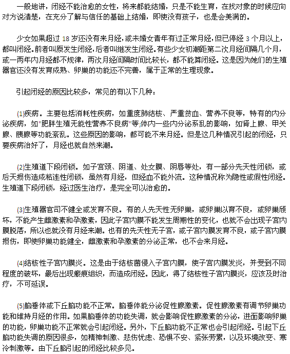 閉經(jīng)是很多女性朋友都擔心發(fā)生的事情,所以女性朋友要注意養(yǎng)護自己的身體,延緩閉經(jīng)的時間,那么閉經(jīng)的常見原因都有什么呢?下面小編就給大家介紹一下閉經(jīng)的原因。