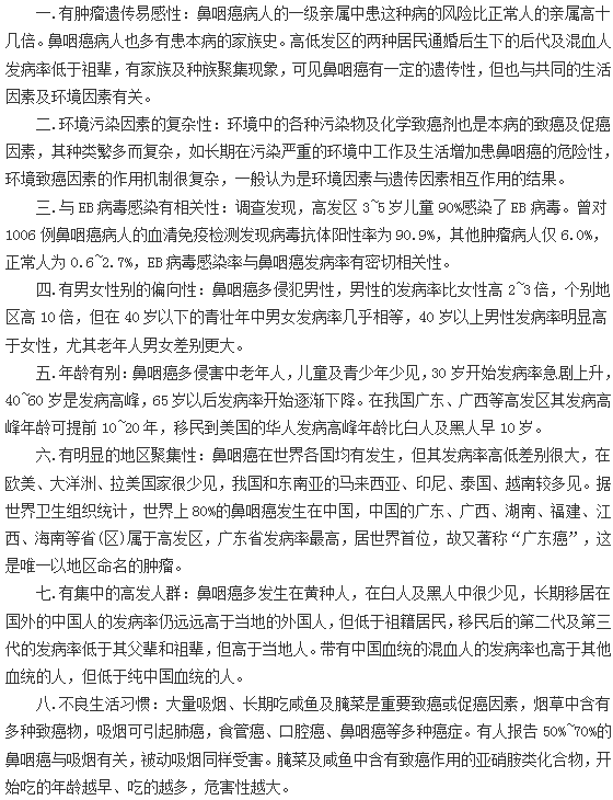 鼻咽癌發(fā)病年齡大多為中年人,亦有青少年患病者,鼻咽癌惡性程度較高,早期即可出現(xiàn)頸部淋巴結(jié)轉(zhuǎn)移。鼻咽癌引起的原因是什么呢?醫(yī)學(xué)教育網(wǎng)編輯為你介紹如下