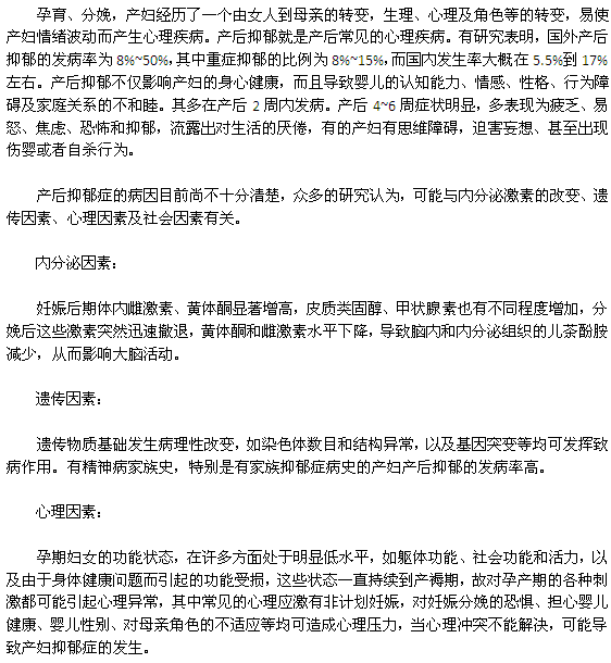 產(chǎn)婦在產(chǎn)后會出現(xiàn)一些心理負擔,如不及時疏導,很容易發(fā)生心理障礙。出現(xiàn)了這種抑郁情緒,除了不利于家人的相處,還會影響正常哺乳,甚至影響孩子的生長以造成嚴重的后果。因此,產(chǎn)婦應保持健康的心態(tài),從生活中尋找樂趣,做一個健康快樂的媽媽。