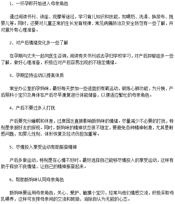 如果產(chǎn)婦在產(chǎn)后出現(xiàn)一些心理負(fù)擔(dān),如不及時(shí)疏導(dǎo),很容易發(fā)生心理障礙。出現(xiàn)了這種抑郁情緒,除了不利于家人的相處,還會(huì)影響正常哺乳,甚至影響孩子的生長(zhǎng)以造成嚴(yán)重的后果。因此,產(chǎn)婦應(yīng)保持健康的心態(tài),從生活中尋找樂(lè)趣,做一個(gè)健康快樂(lè)的媽媽。