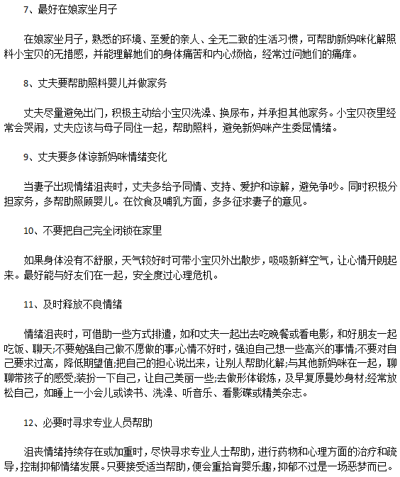 如果新媽媽在產(chǎn)后得了抑郁癥,這不僅會(huì)影響下奶,而且還會(huì)影響胎兒,那么針對(duì)這種情況,應(yīng)該如何解決產(chǎn)后抑郁癥呢?小編為大家介紹12種方法供大家參考: